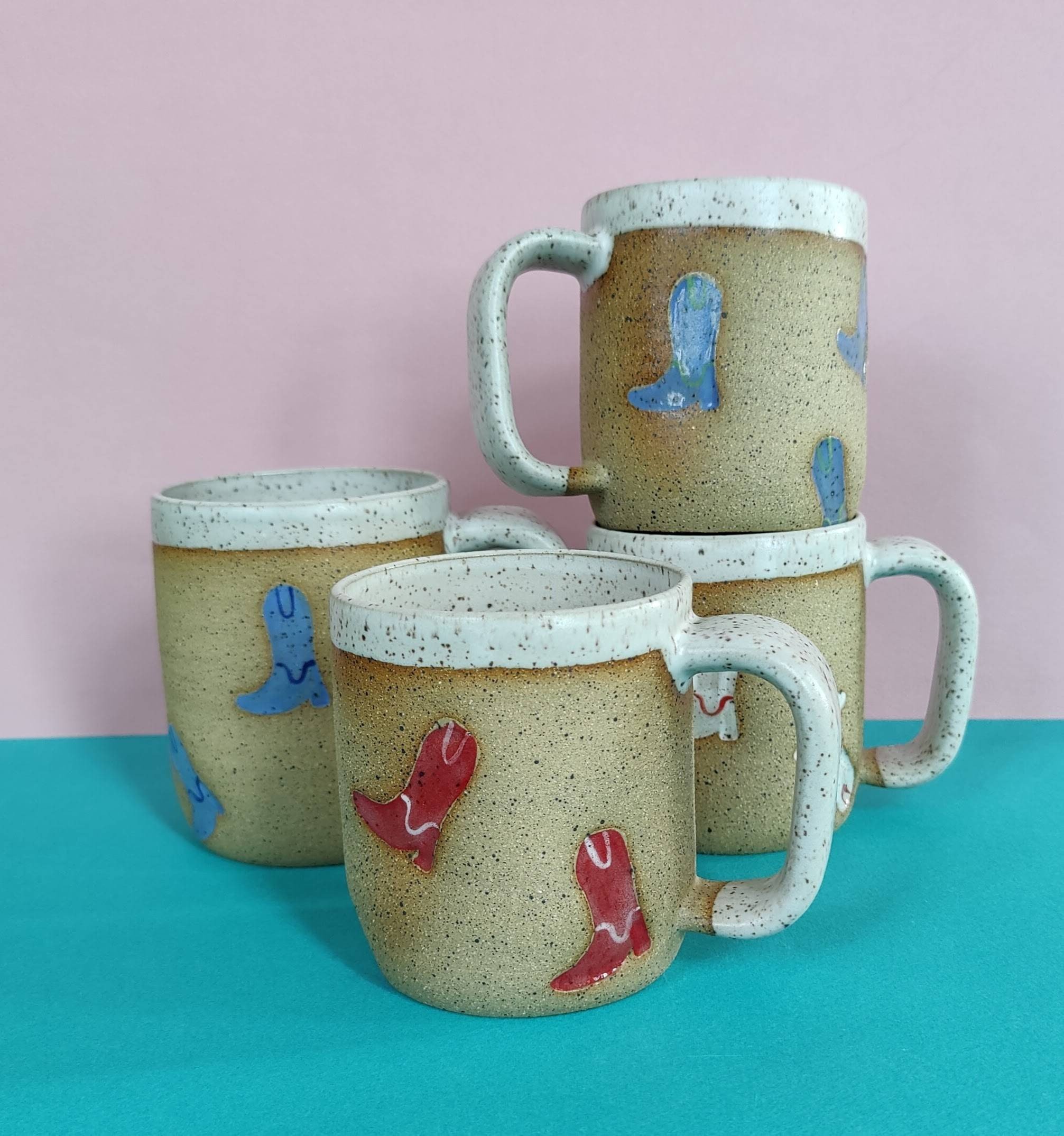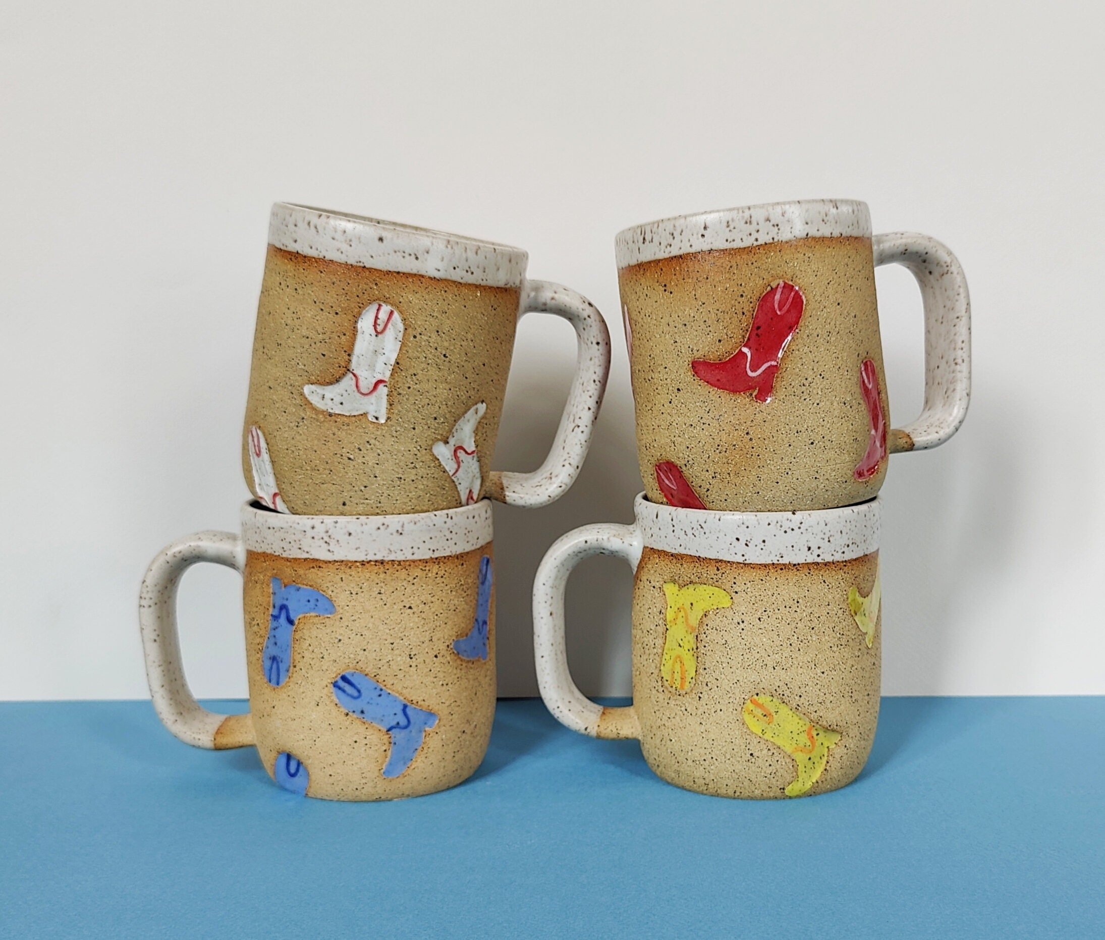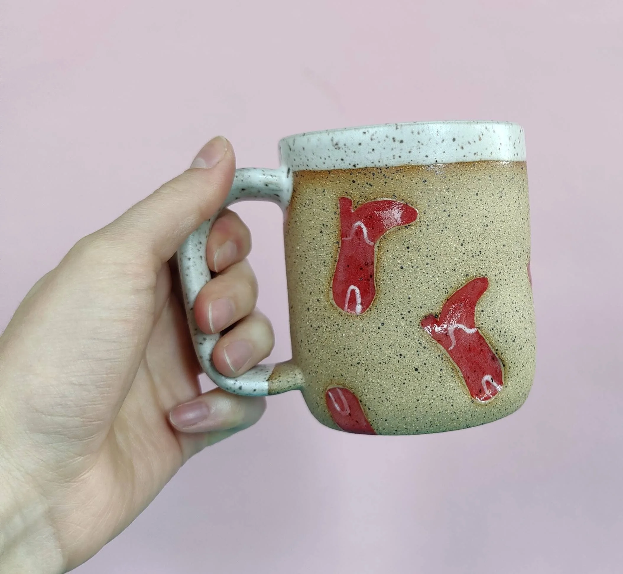 These handmade mugs were thrown on the wheel and then stamped with my hand carved goose stamp!